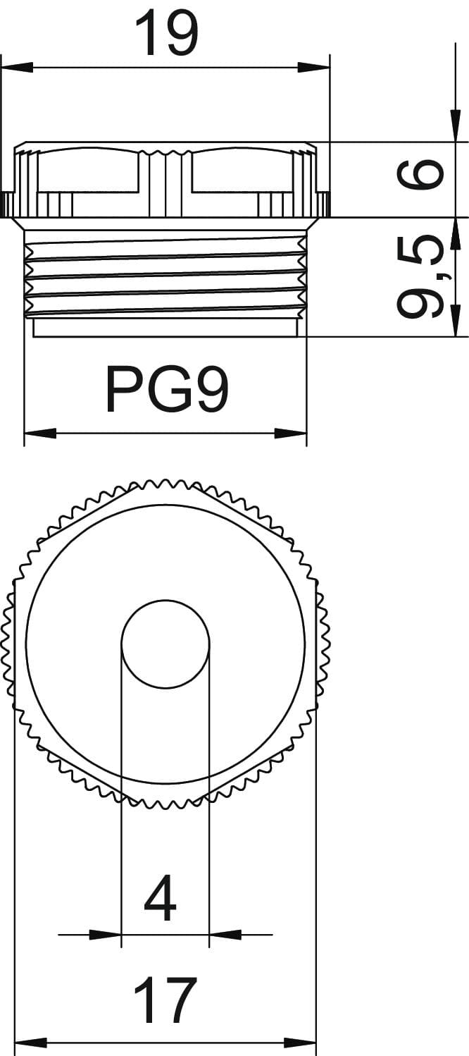 Con membrana perforabile, con foro D pretagliato, ma prima di tutto chiusa. Guarnizione a torsione per avvitamento in filettatura PG secondo DIN 40430.Con filettatura conica a tenuta automatica all'estremità filettata, così da rendere superfluo l'impiego di un anello di tenuta per attacco filettato. Grado di protezione raggiungibile con montaggio accurato IP 54.
