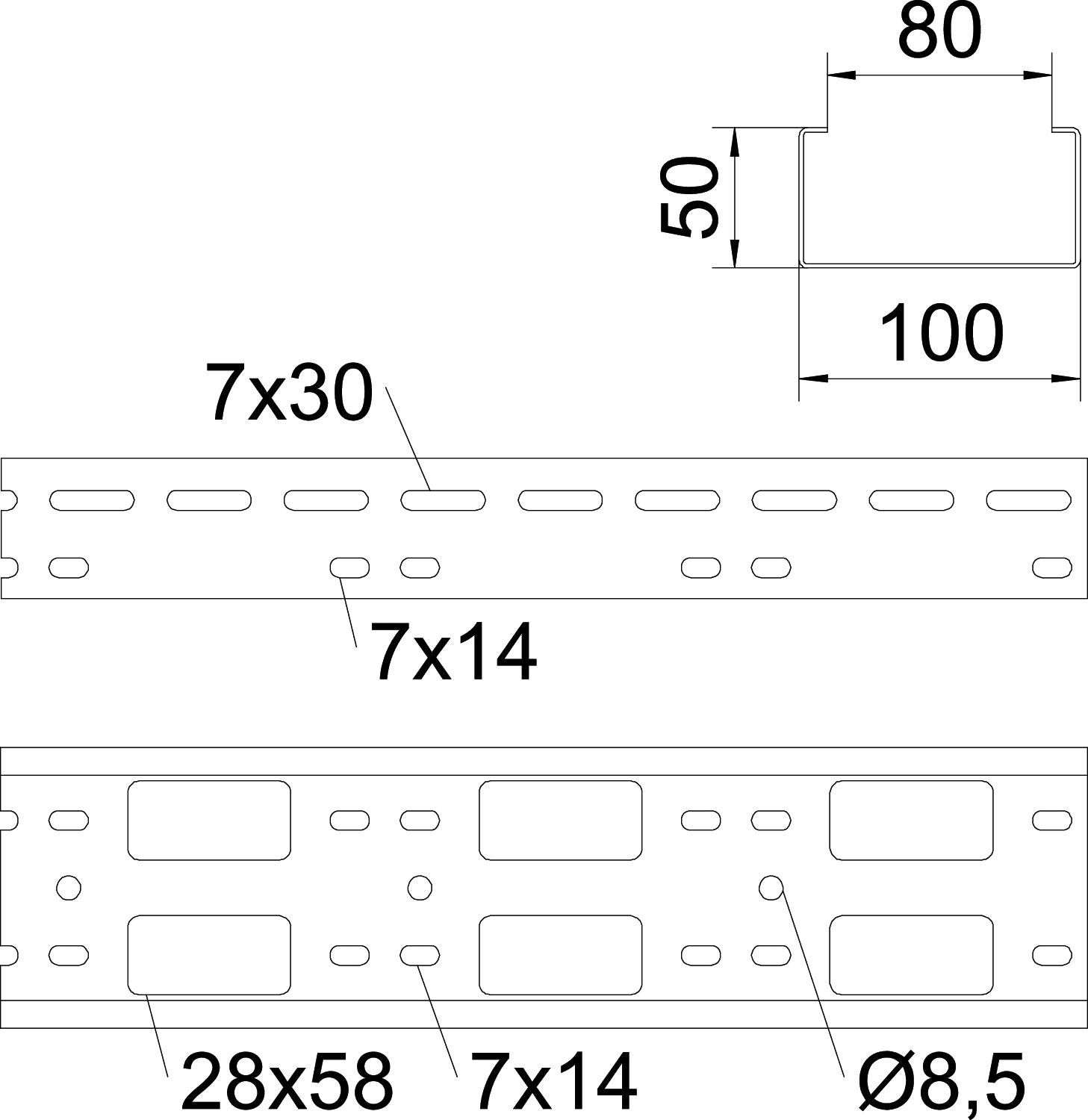OBO BETTERMANN - Passerella AZ speciale asolatura 50x100x3000 in acciaio zincato a caldo per immersione.