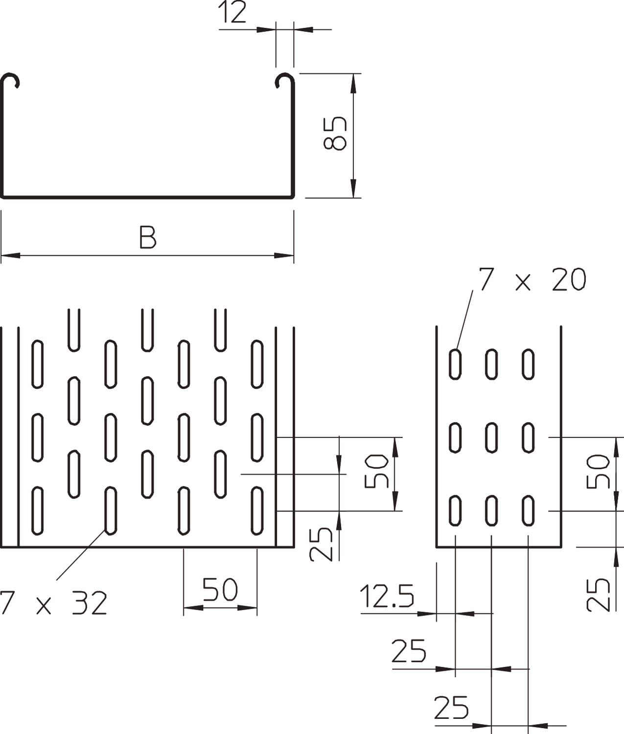OBO BETTERMANN - Passerella SKS asolata con connettori 85x500x3000 in Acciaio zincato continuo. 6058507