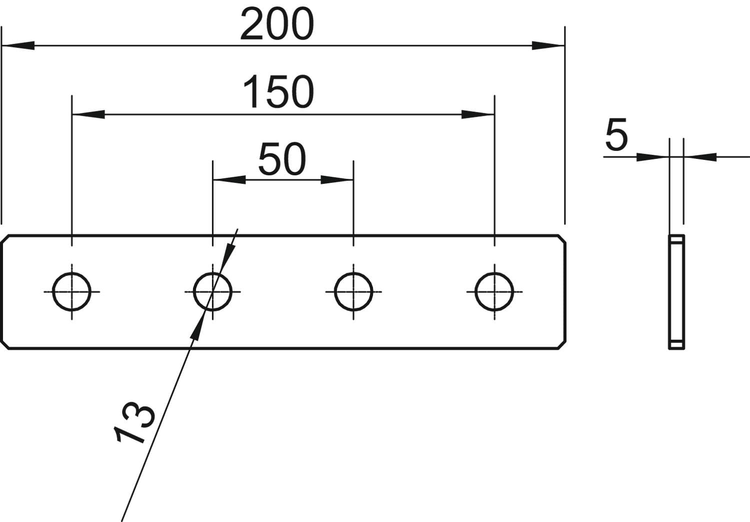 OBO BETTERMANN - Piastra di collegamento con 4 fori 200x40x4 in Acciaio Inox A4 1.4571 non trattato, ulteriore trattamento GMS VP A4. 1124729