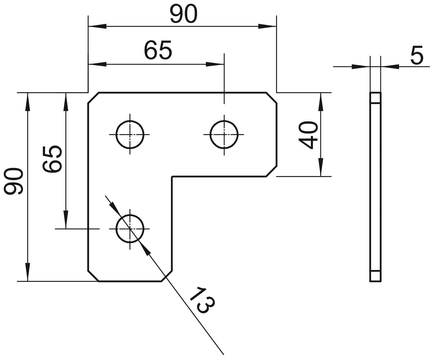 OBO BETTERMANN - Piastra di collegamento in acciaio INOX A4 1.4571, forma a L 90x90x40x4, non trattato con ulteriore trattamento. 1124733