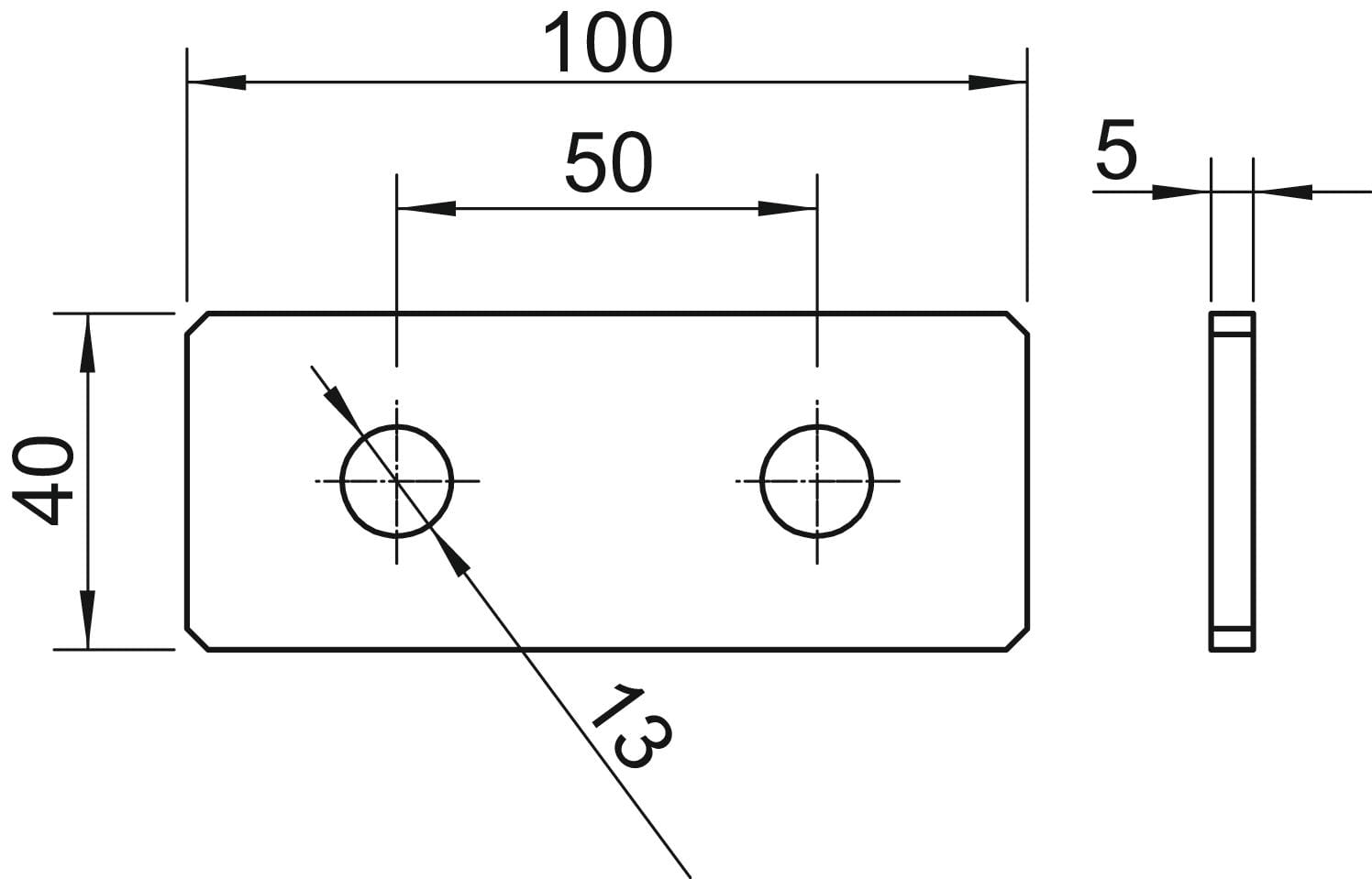 OBO BETTERMANN - Piastra di collegamento zincata a caldo con 2 fori 100x40x5 per immersione GMS VP FT. 1124645