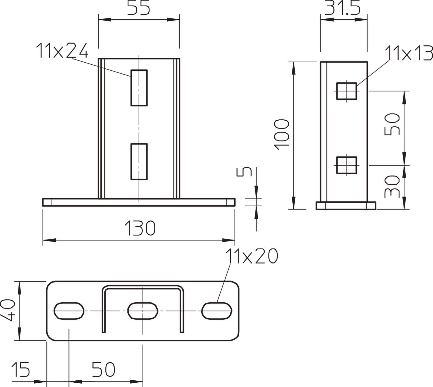 OBO BETTERMANN - Piastra di testa per supporto US 3 130x40x100 in acciaio zincato a caldo per immersione. 6348874