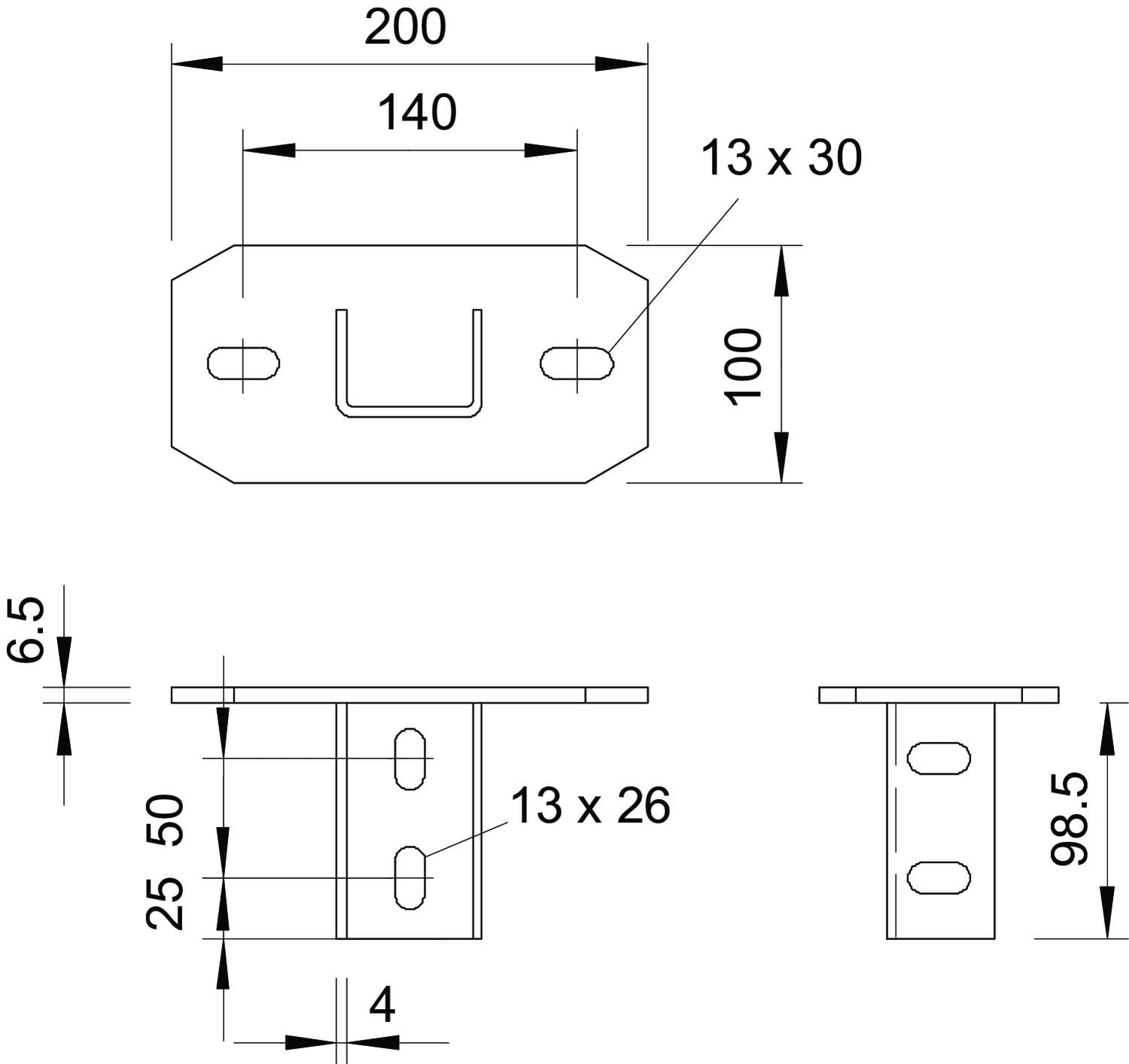 OBO BETTERMANN - Piastra di testa per supporto US 7 200x100 in acciaio inox A2 1.4301 non trattato, con possibilità di ulteriore trattamento.