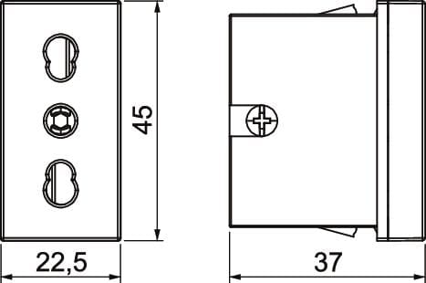 Presa a 1 modulo 90° con interruttore, Italia P17/11, con protezione del contatto elevata, con morsetti a vite, 2 poli.