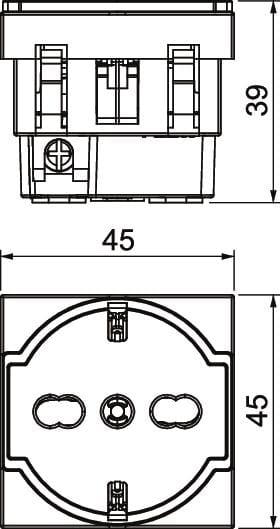 Presa singola 90°, Italia P17/11, con protezione del contatto elevata, con morsetti a vite, 2 poli, 16 A, 250 V~.