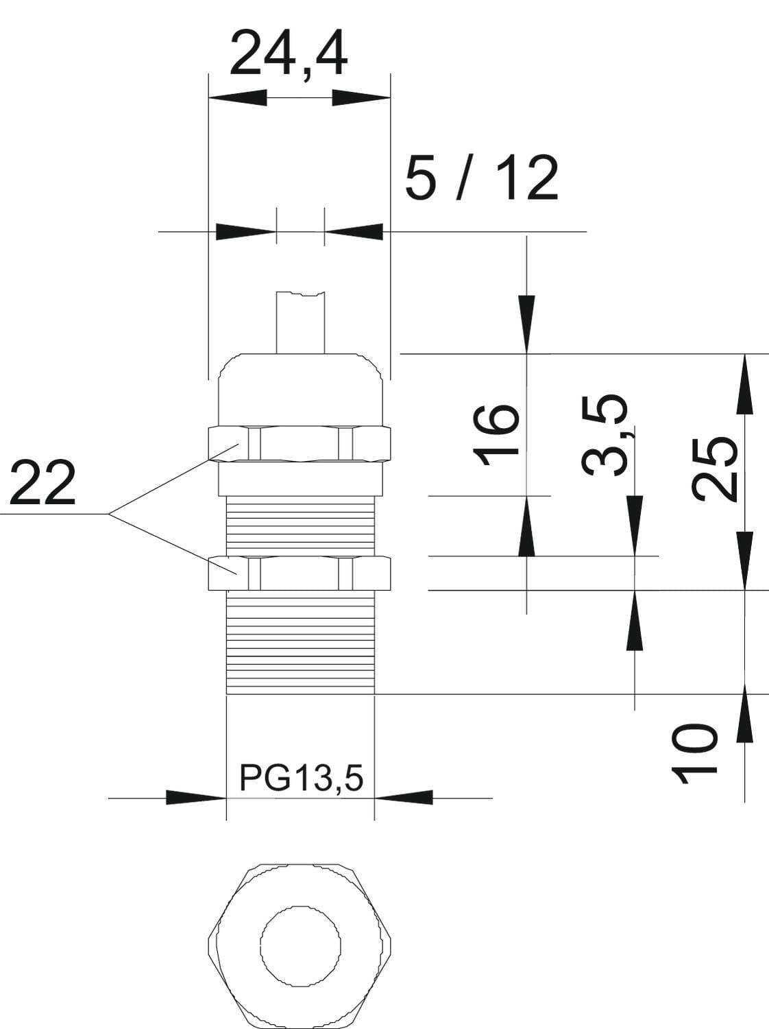 dimensione nominale della filettatura metrica/PG - 13.5