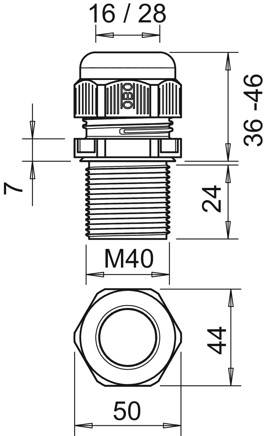 dimensione nominale della filettatura metrica/PG - 40