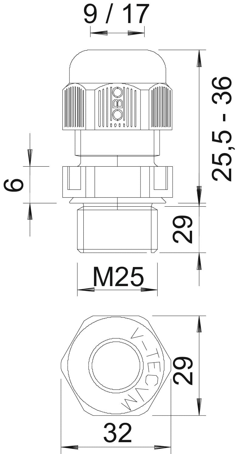 OBO BETTERMANN - Pressacavo filettatura metrica lunga M25 in poliammide nero V-TEC VM L25 SW. 2022970