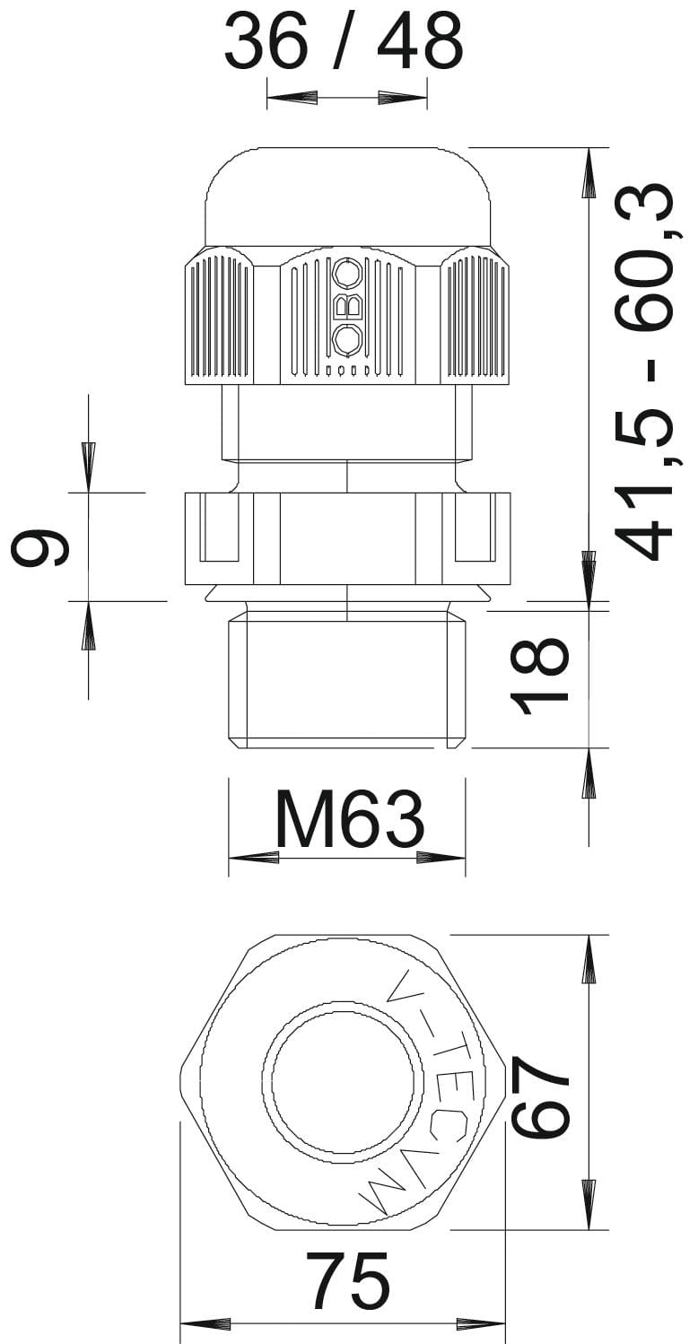 OBO BETTERMANN - Pressacavo filettatura metrica lunga M63 in Poliammide grigio chiaro RAL 7035. 2022957