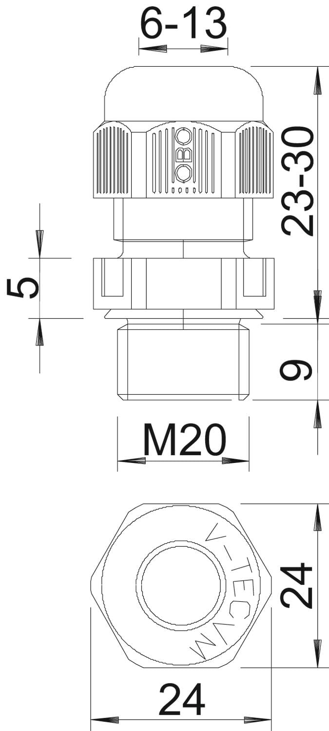 OBO BETTERMANN - Pressacavo M20 in Poliammide bianco RAL 9010 con filettatura metrica V-TEC VM20 RW. 2022804