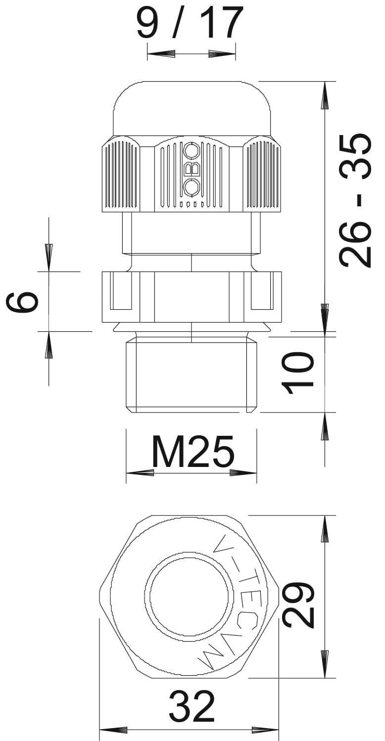OBO BETTERMANN - Pressacavo M25 in Poliammide Grigio Chiaro RAL 7035 V-TEC VM25 LGR. 2022868
