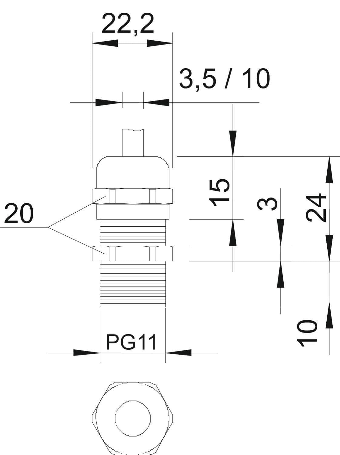 Dimensione nominale della filettatura metrica/PG - 11
