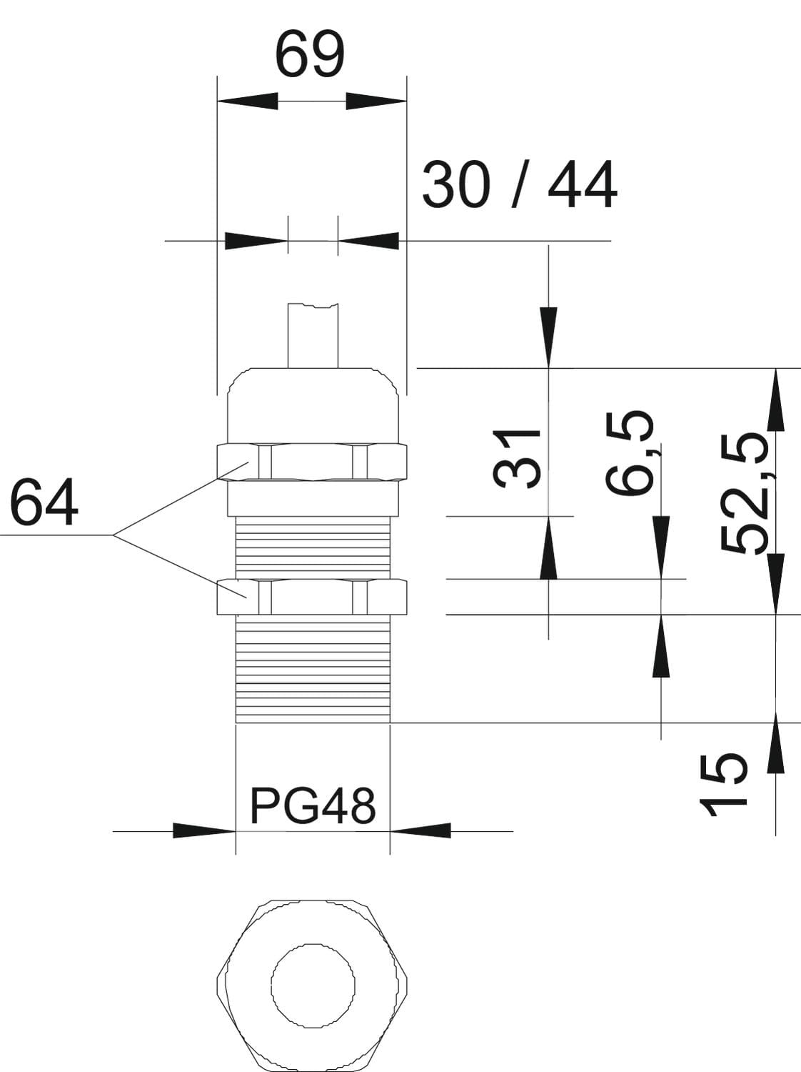 Dimensione nominale della filettatura metrica/PG - 48