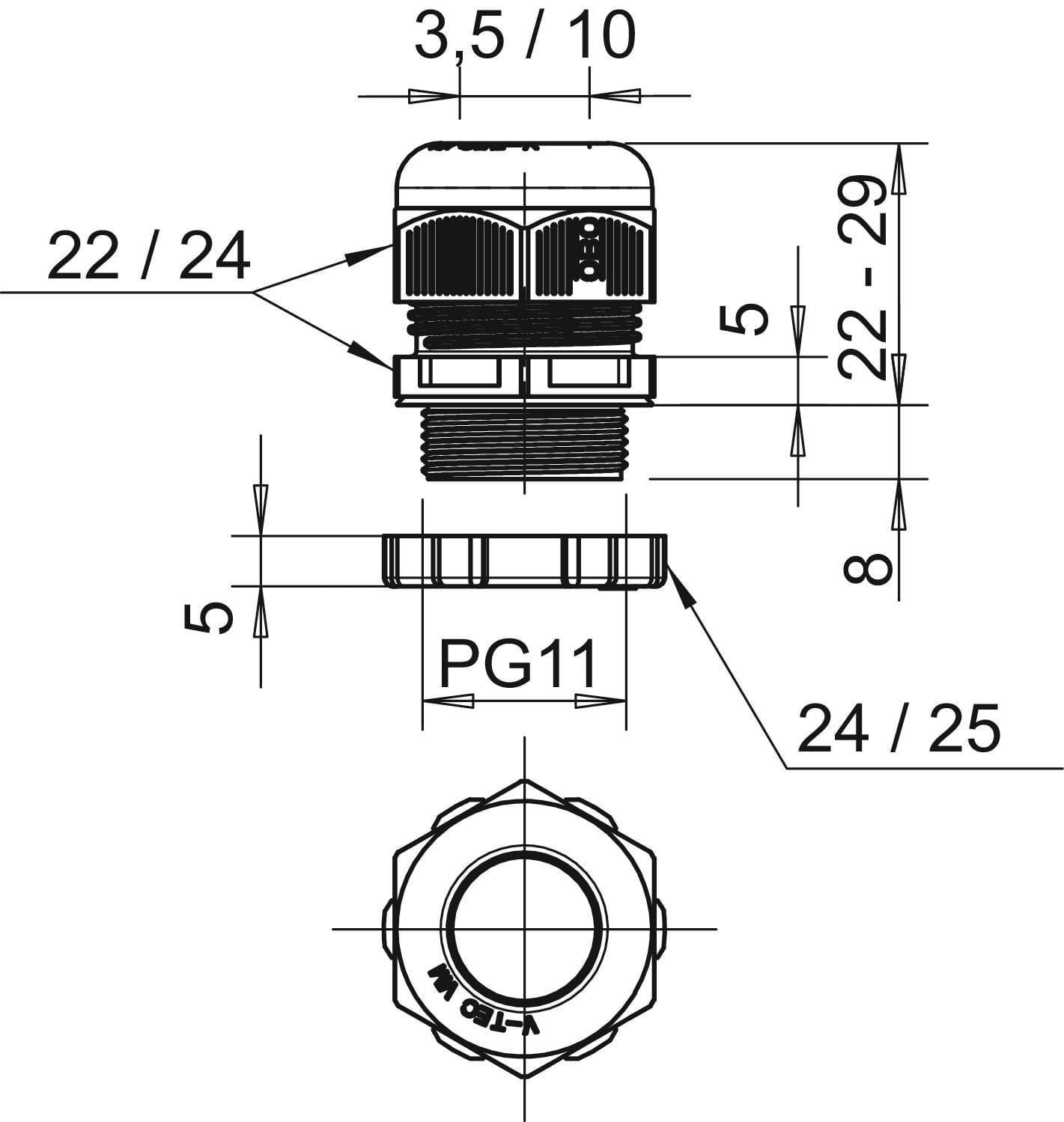 dimensione nominale della filettatura metrica/PG - 11