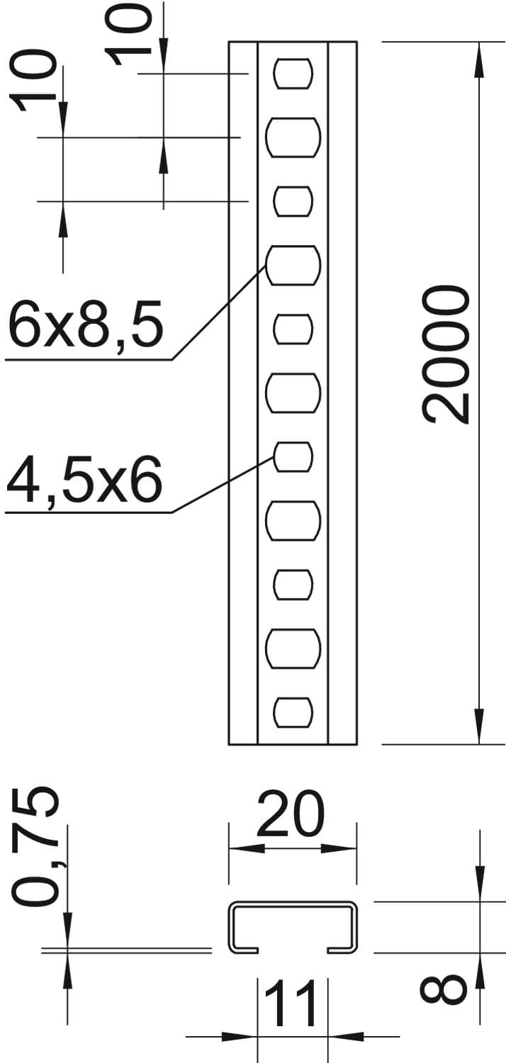 OBO BETTERMANN - Profilato a C asolata, foro 11mm 2000x20x8 in acciaio non trattato. 1106023