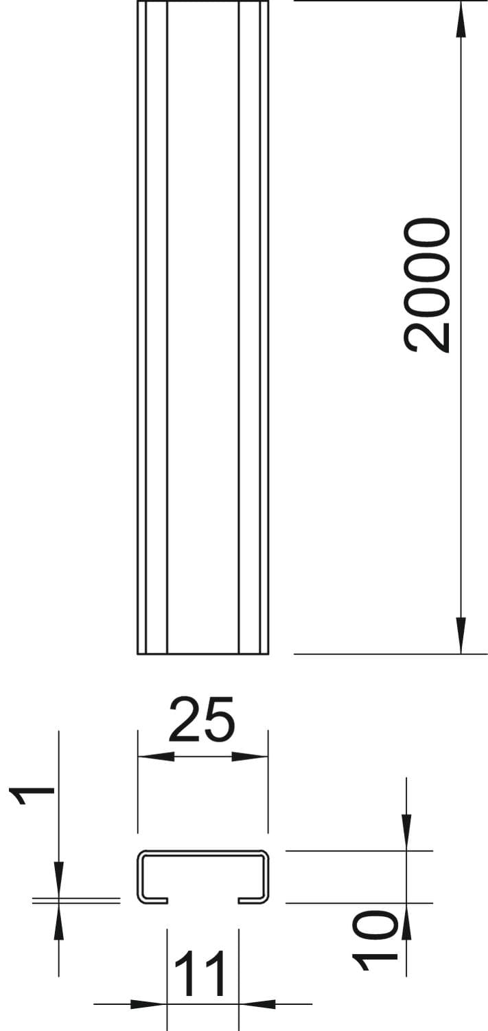 OBO BETTERMANN - Profilato a C non forato, slot 11mm 2000x25x10 in acciaio non trattato. 1107038