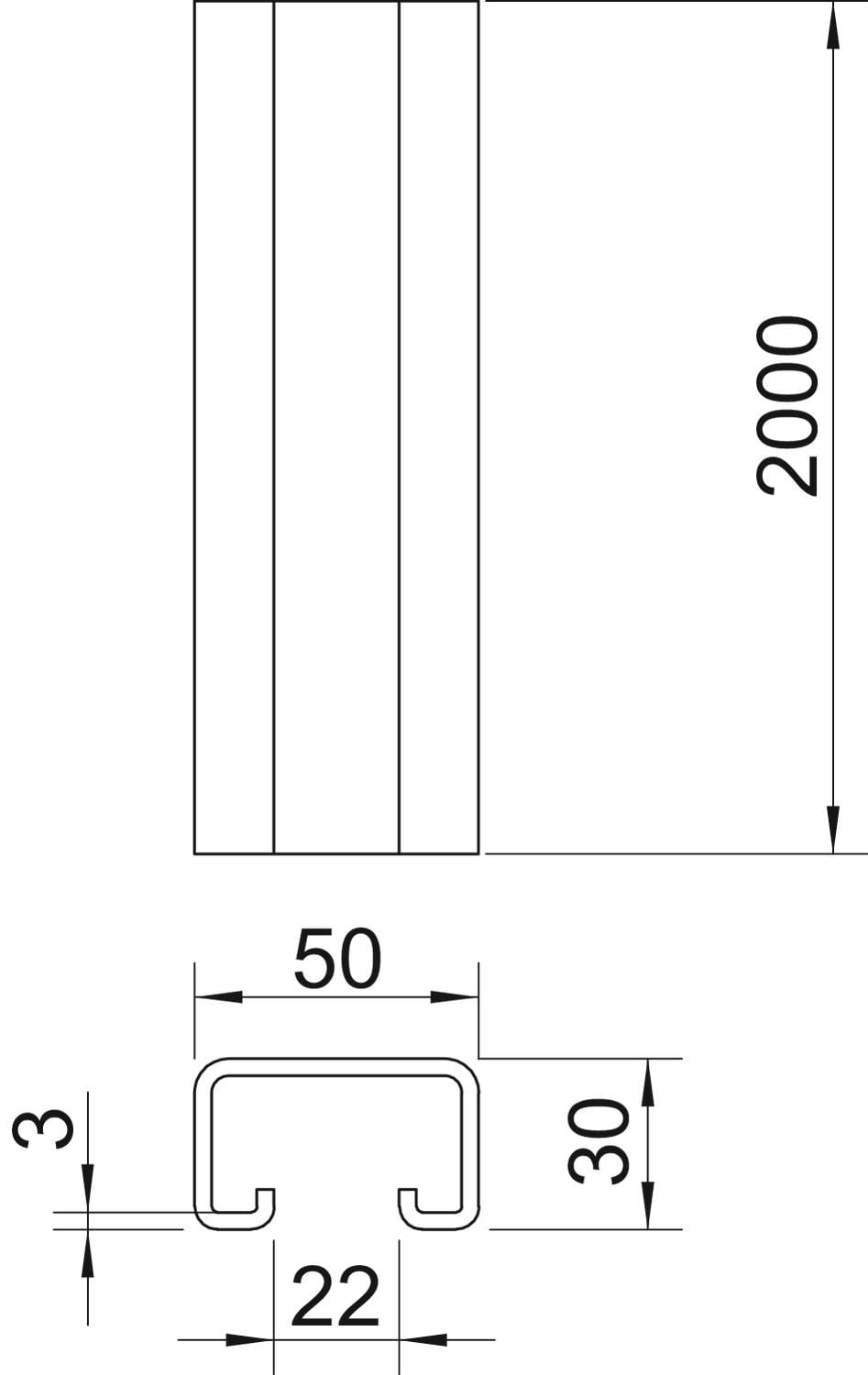 OBO BETTERMANN - Profilato a C non forato, slot 22mm 2000x50x30 in Acciaio zincato a caldo per immersione. 1121524