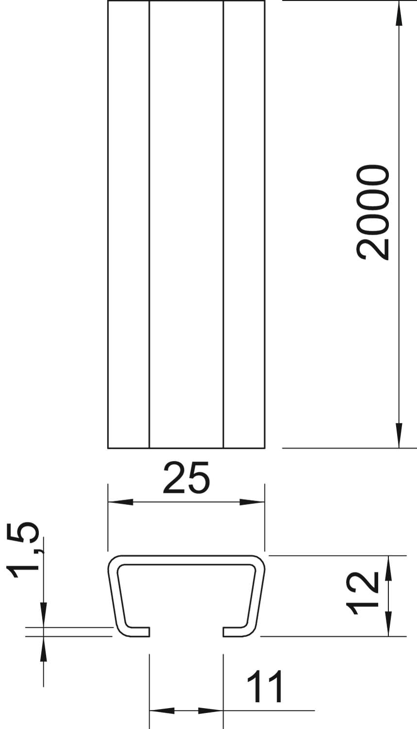 OBO BETTERMANN - Profilato a C zincato a caldo per immersione, non forato, slot 11mm, 2000x25x12. 1117025