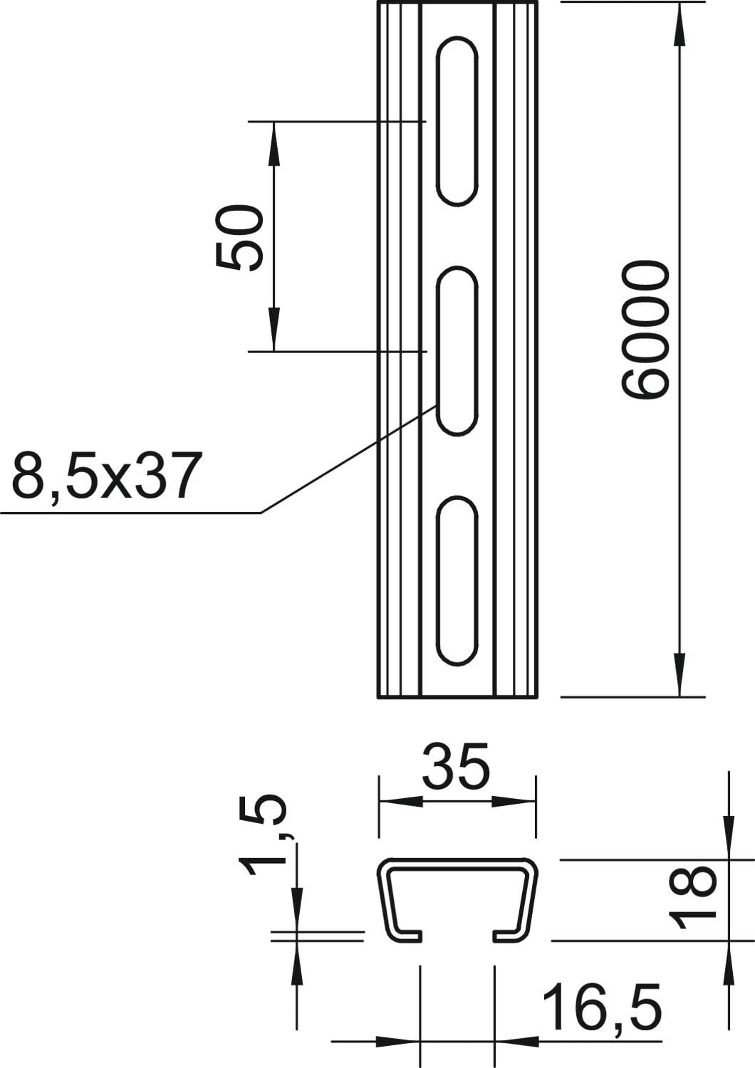OBO BETTERMANN - Profilato asolata, foro 16,5 mm 6000x35x18 Acciaio INOX A2 1.4301 non trattato, ulteriore trattamento. 1119729
