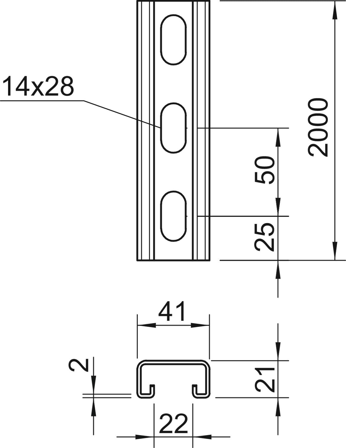 OBO BETTERMANN - Profilato asolata, foro 22mm 2000x41x21 Acciaio INOX A2 1.4301 non trattato, ulteriore trattamento. 1122925