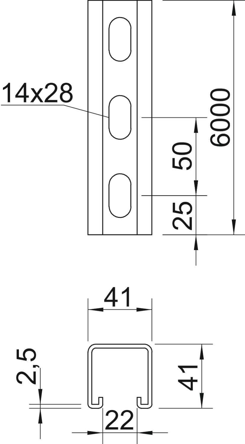 OBO BETTERMANN - Profilato asolata, foro 22mm 6000x41x41 Acciaio INOX A4 1.4571 non trattato, ulteriore trattamento. 1123051