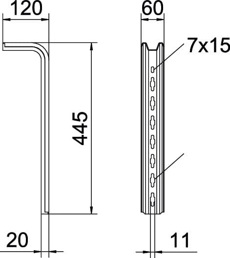 OBO BETTERMANN - Profilato sospensione TP L445mm Acciaio zincato in continuo.