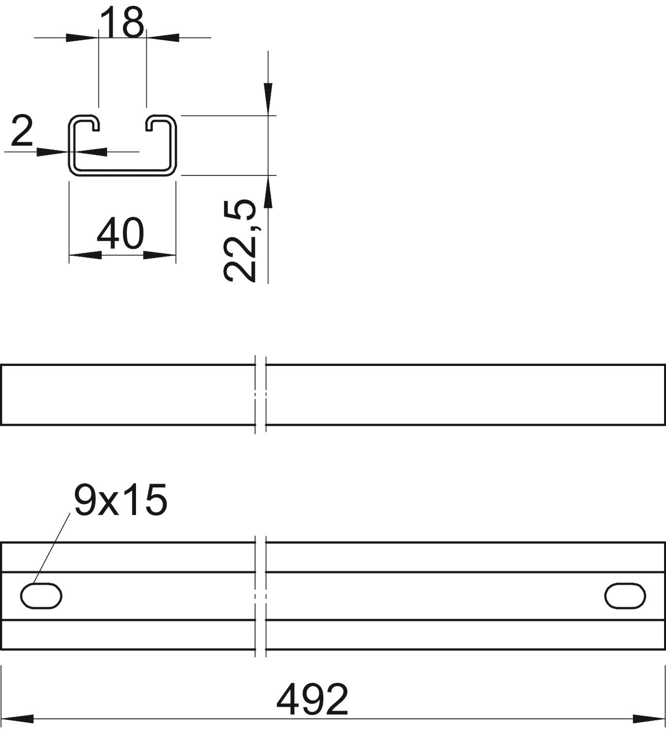 OBO BETTERMANN - Profilato U-support 492x40x22,5 Acciaio zincato caldo immersione.