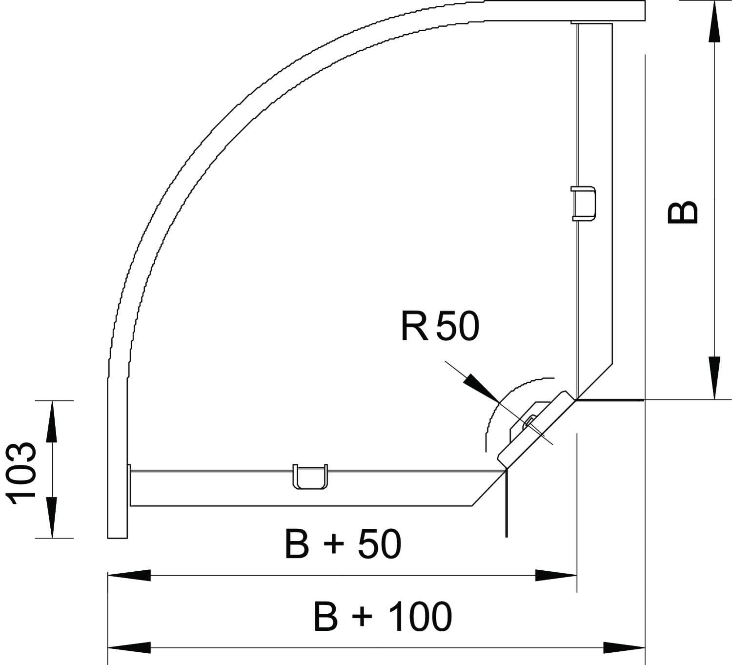 OBO BETTERMANN - Raccordo curva 90° orizzontale angolo 110x300 in Acciaio zincato continuo.