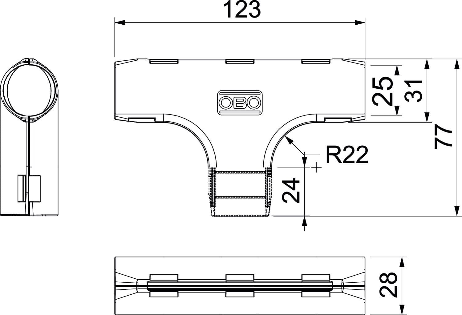 OBO BETTERMANN - Raccordo T tubo Quick M25 in polipropilene grigio chiaro RAL 7035 3000 TMS. 2153843