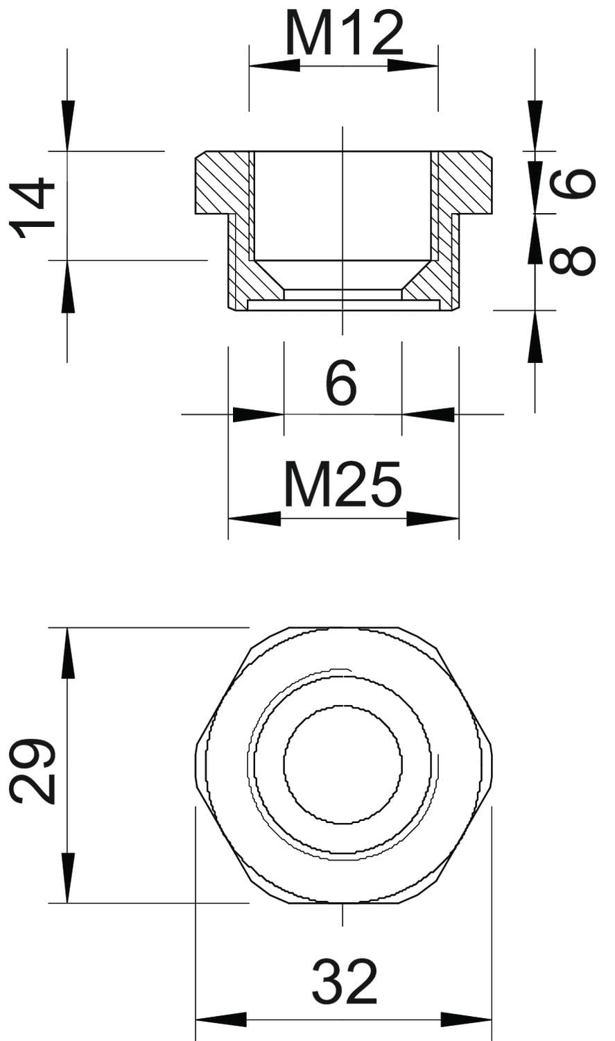 dimensione della filettatura metrica, filettatura interna - 12