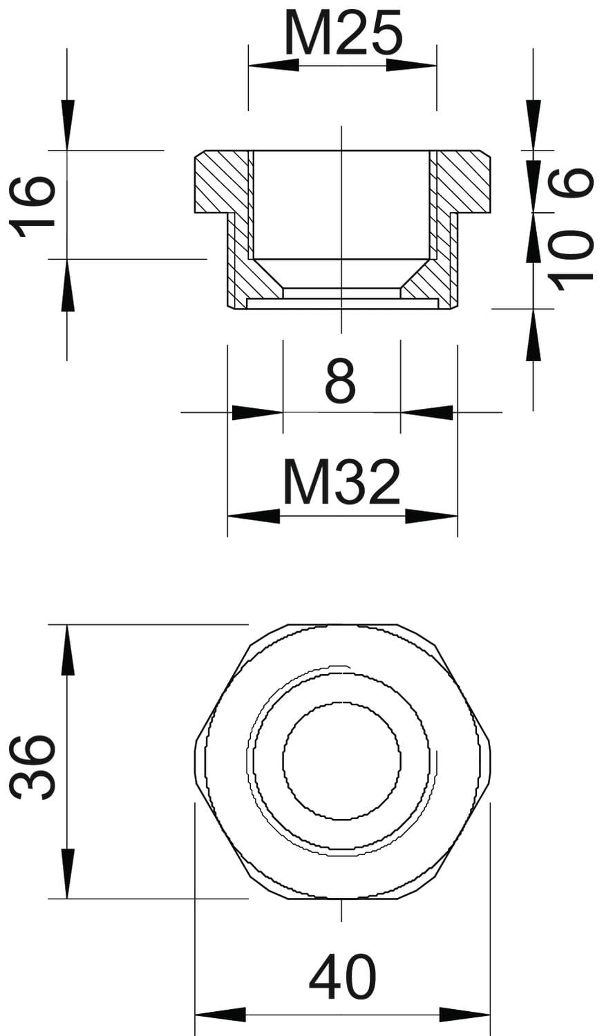dimensione della filettatura metrica, filettatura interna - 25