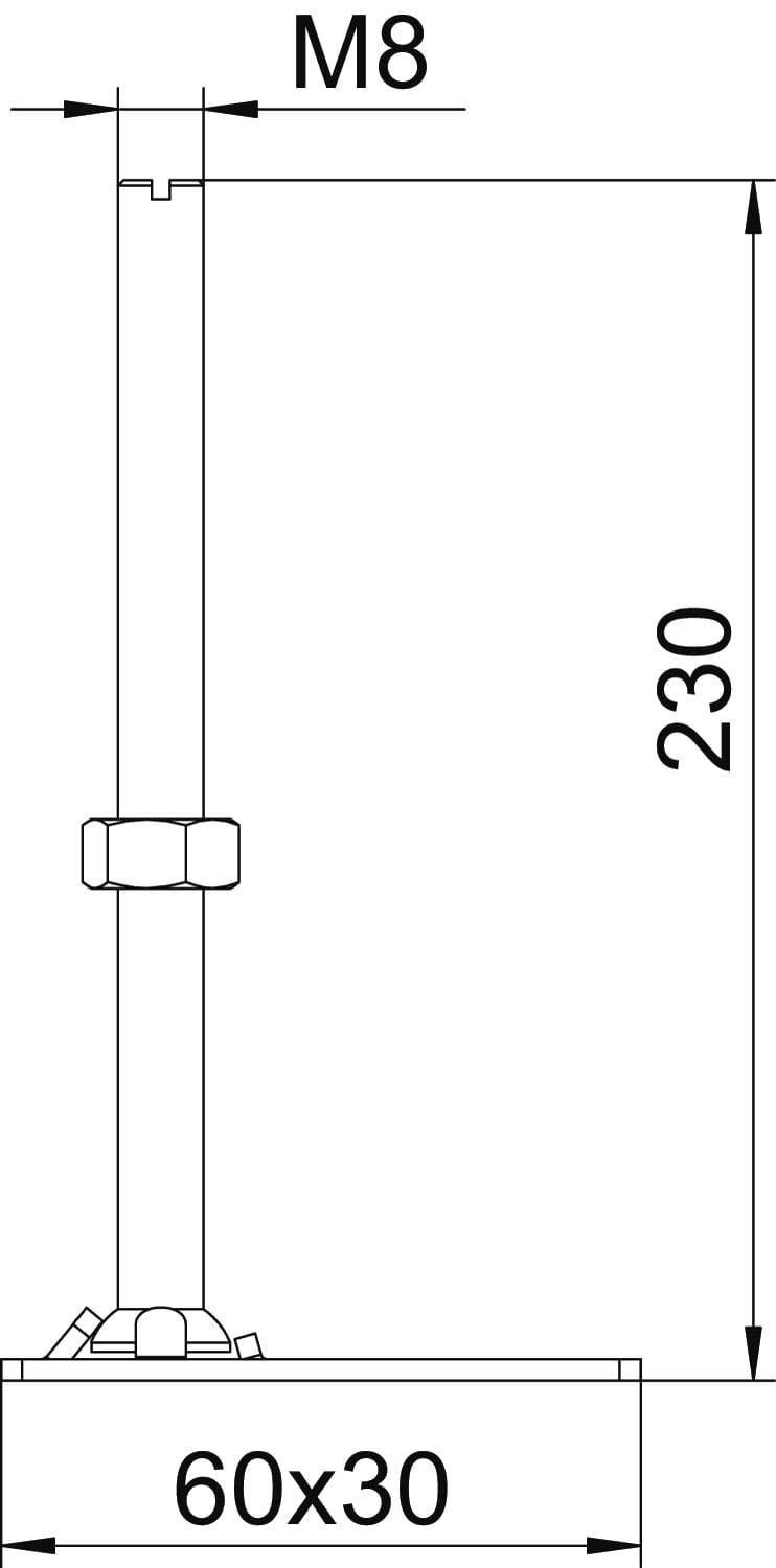 OBO BETTERMANN - RK NEV2 230 unita di regolazione altezza per cassette e OKB M8x230mm acciaio zincato galvanicamente.