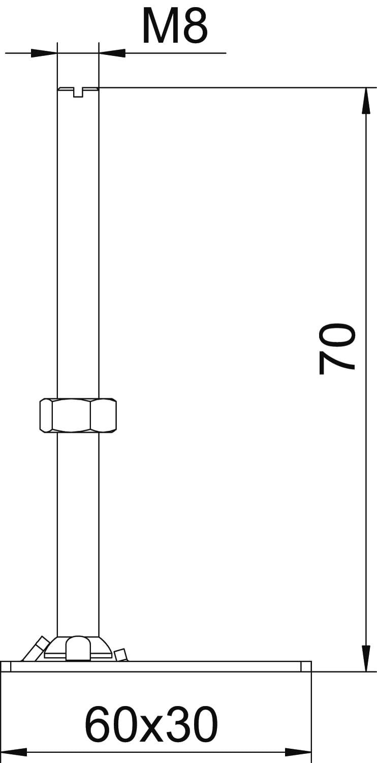 OBO BETTERMANN - RK NEV2 70 unita di regolazione altezza per cassette e OKB M8x70mm acciaio zincato galvanicamente.