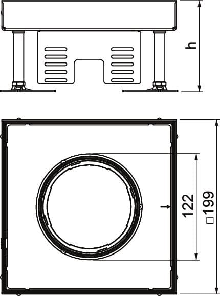 OBO BETTERMANN - rkfn3 4 v sl1 20 cassetta livellabile sl quadrata con tubo 199x199x105 acciaio inox.