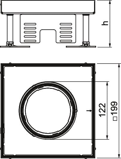 Le cassette livellabili quadrate sono adatte per incassare gli apparecchi a livello pavimento in pavimenti sopraelevati e con intercapedini, così come in tutti i tipi di sistemi di installazione a pavimento. In base alla versione, sono indicate per pavimenti trattati a secco, a umido o con lavaggio bagnato. Il bordo superiore della cassetta può essere regolato tramite un livellamento dall'interno in modo da coincidere perfettamente col bordo superiore del rivestimento del pavimento circostante. In caso di montaggio in un sistema di condotti, quest'ultimo deve disporre di un'adeguata apertura di montaggio. Una scatola di connessione sotto pavimento necessita di un coperchio di montaggio con la corrispondente apertura d'incasso. Le cassette sono fabbricate in acciaio o ottone. Tutte le cassette contengono una piastra in lamiera di acciaio dello spessore di 4 mm per sopportare in sicurezza gli eventuali carichi. Sono disponibili cassette adatte a spessori del rivestimento del pavimento diversi, di 20 e 25 mm.