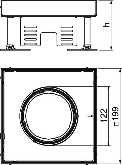 OBO BETTERMANN - rkfn3 4 vs 25 cassetta livellabile quadrata con tubo 199x199x105 acciaio inox. 7408962