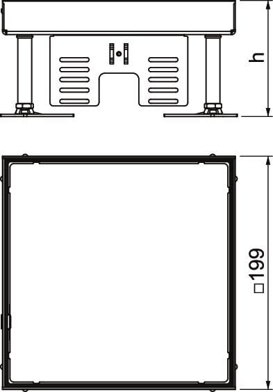 Le cassette livellabili quadrate sono adatte per incassare gli apparecchi a livello pavimento in pavimenti sopraelevati e con intercapedini, così come in tutti i tipi di sistemi di installazione a pavimento. In base alla versione, sono indicate per pavimenti trattati a secco, a umido o con lavaggio bagnato. Il bordo superiore della cassetta può essere regolato tramite un livellamento dall'interno in modo da coincidere perfettamente col bordo superiore del rivestimento del pavimento circostante. In caso di montaggio in un sistema di condotti, quest'ultimo deve disporre di un'adeguata apertura di montaggio. Una scatola di connessione sotto pavimento necessita di un coperchio di montaggio con la corrispondente apertura d'incasso. Le cassette sono fabbricate in acciaio o ottone. Tutte le cassette contengono una piastra in lamiera di acciaio dello spessore di 4 mm per sopportare in sicurezza gli eventuali carichi. Sono disponibili cassette adatte a spessori del rivestimento del pavimento diversi, di 20 e 25 mm.