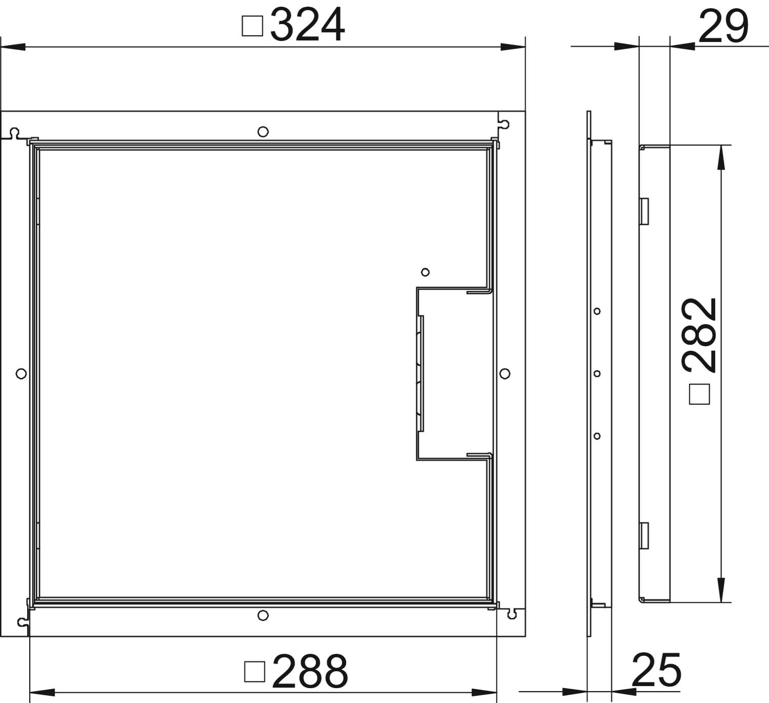 OBO BETTERMANN - RKS 2V2 25 cassetta telaio con uscita cavo laterale 282x282x25 acciaio inox A2 1.4301.