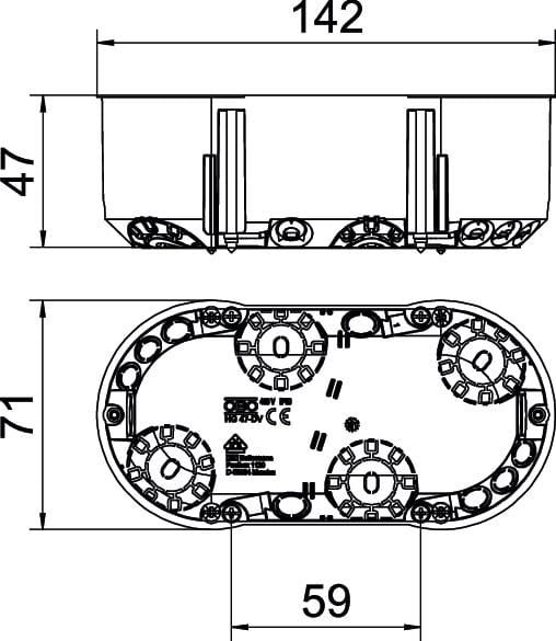 OBO BETTERMANN - Scatola cartongesso HW doppia combinazione 142x71 Polipropilene arancio HG 47-DV. 2003822