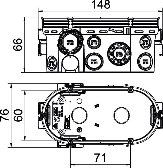 OBO BETTERMANN - Scatola cartongesso UP doppia combinazione 2x Ø60xH66mm Polipropilene Jet black. 2003720