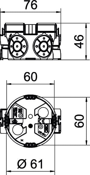 OBO BETTERMANN - Scatola da incasso UP ermetica Ø60mm, H46mm Polypropylen / Thermoplastisches Elastomer deep black / blue grey. 2003706