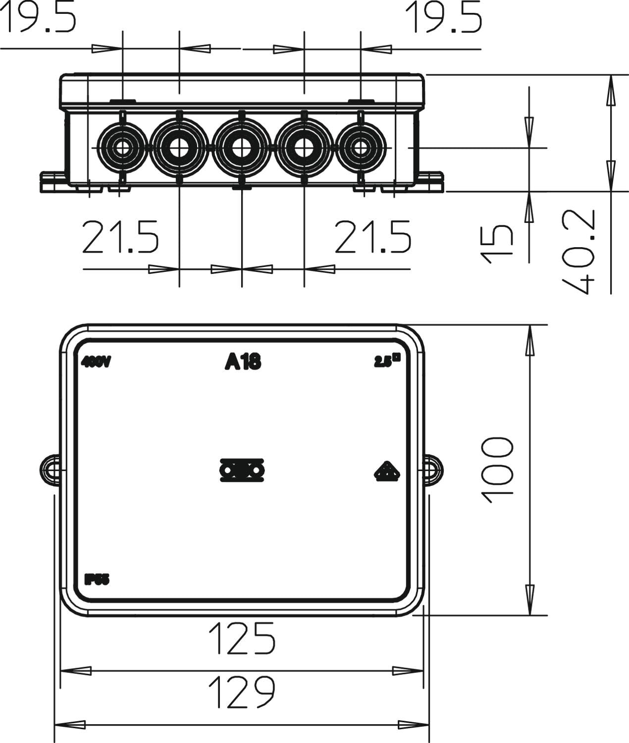 OBO BETTERMANN - Scatola di derivazione 125x100x38 in Polietilene grigio chiaro RAL 7035. 2000410