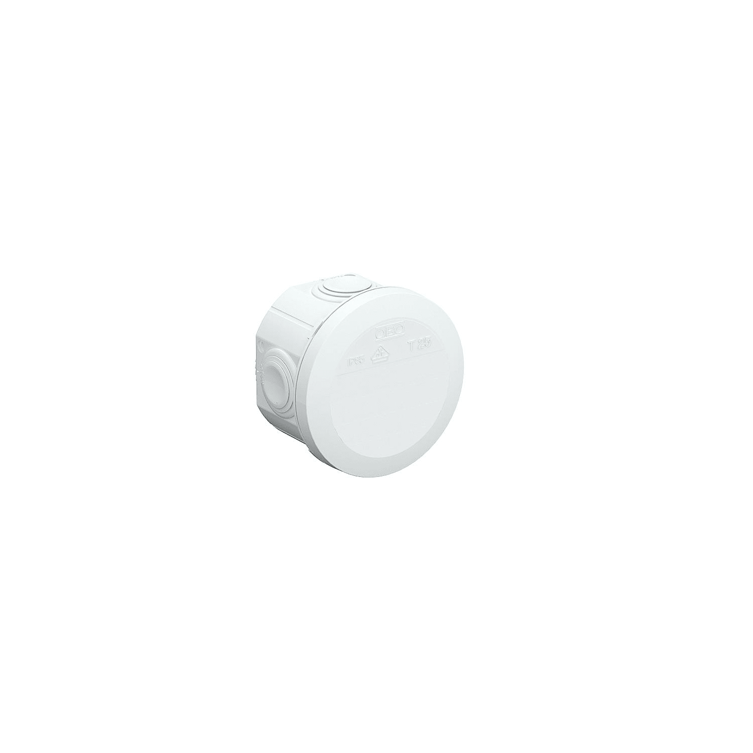 Scatola di derivazione per il collegamento di cavi e linee in ambienti interni e ambienti esterni protetti. Forma rotonda con Tenute a innesto sui lati e inserti di deviazione nel pavimento. Adatta per il montaggio su pareti e soffitti, il montaggio su piastre di montaggio e filettatura nel pavimento. Con la possibilità di fissaggio interno. Con coperchio a scatto fisso. Costruita con materiali privi di alogeni e stabilizzati ai raggi UV. Scatola di derivazione a norma DIN EN 60670. Antifiamma a norma DIN EN 60695-2-11, temperatura di prova 650 °C. Resistenza all'impatto IK07 a norma DIN EN 50102.