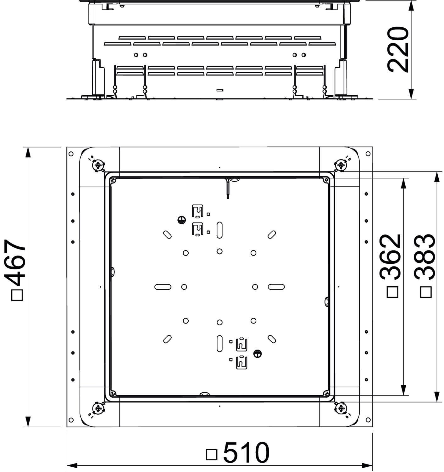 OBO BETTERMANN - Scatola per massetto 165-220 mm 510x467x165 in Acciaio zincato continuo. 7410056