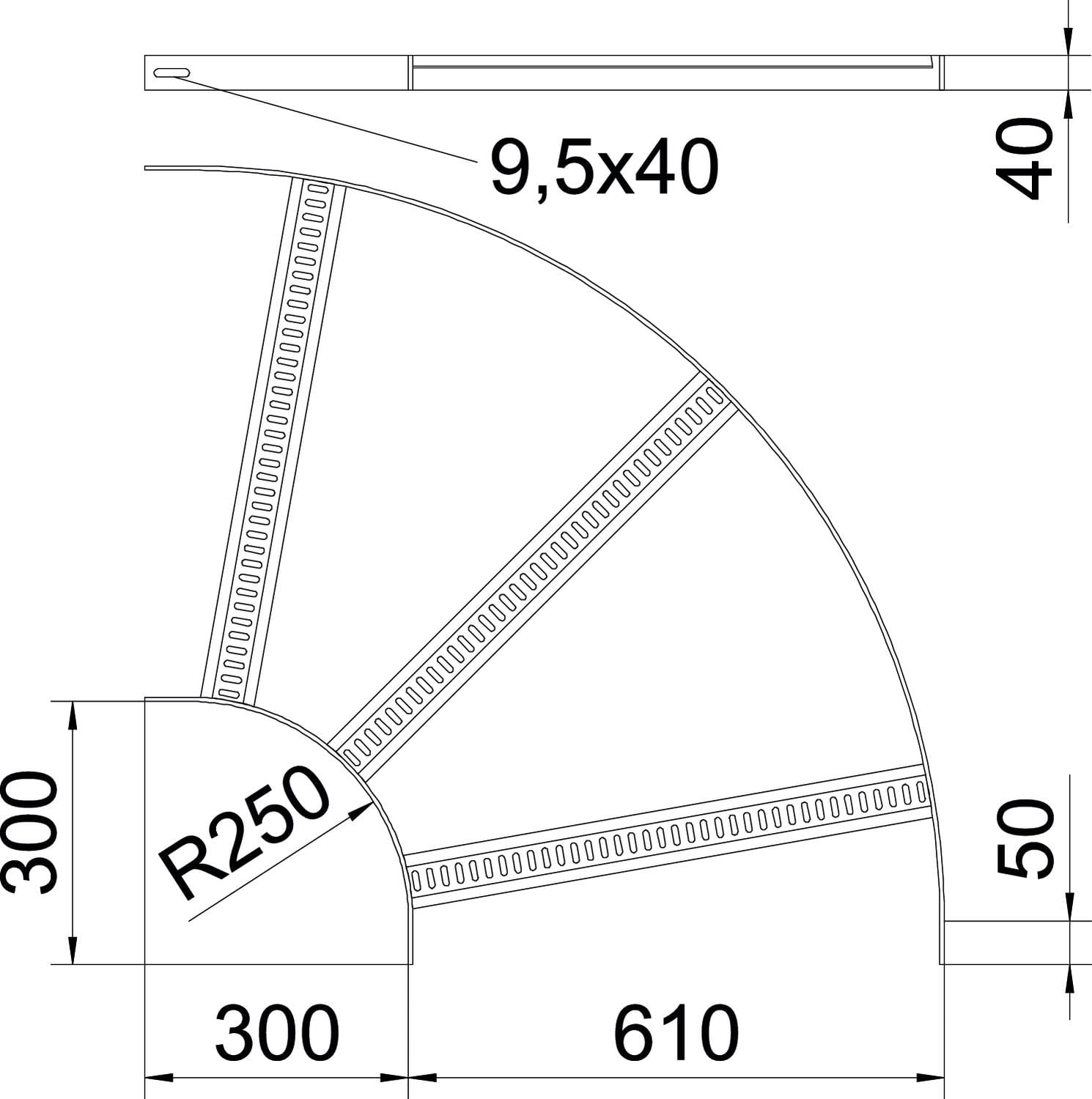 OBO BETTERMANN - Slb 90 62 600 Ft Curva 90 con piolo trapezoidale B610mm Acciaio zincato a caldo per immersione.