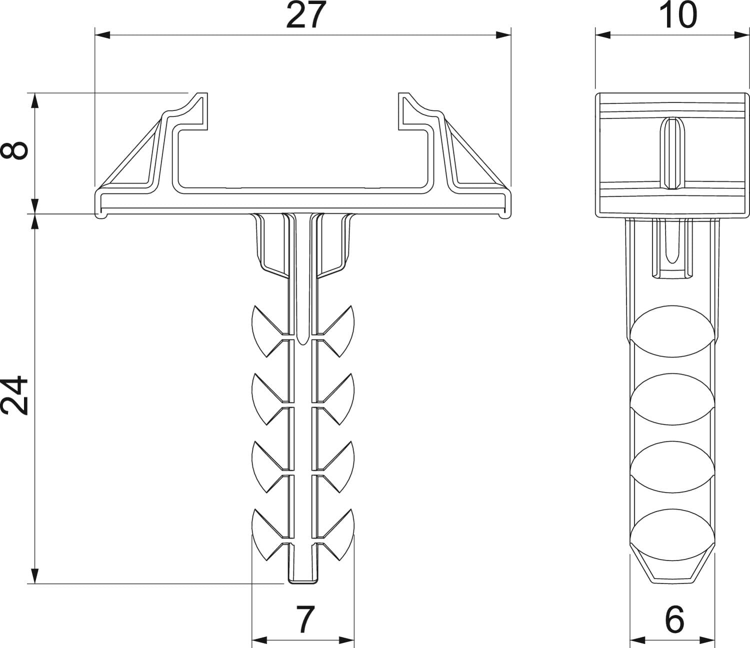 OBO BETTERMANN - Spina a innesto per Quick clip 2957 6x26mm Poliammide grigio chiaro RAL 7035 STQS. 2351650