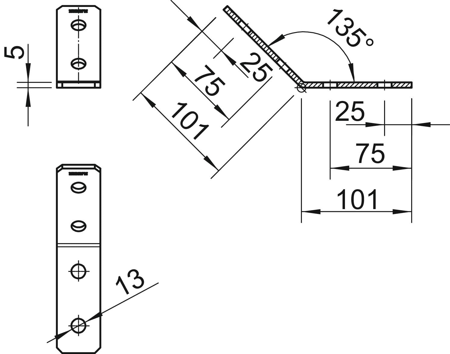 OBO BETTERMANN - Staffa di collegamento 45 gradi con 4 fori 101x101x40x5 in acciaio zincato a caldo per immersione. 1124669