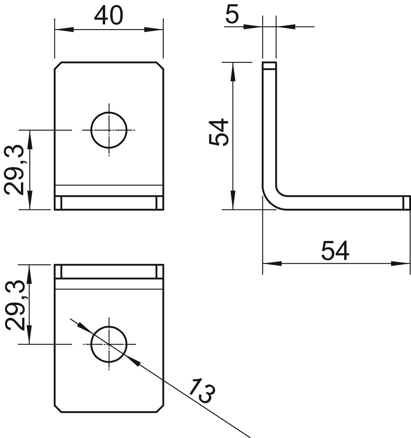 OBO BETTERMANN - Staffa di collegamento 90° con 2 fori 54x54x40x5 in acciaio zincato a caldo per immersione. 1124659