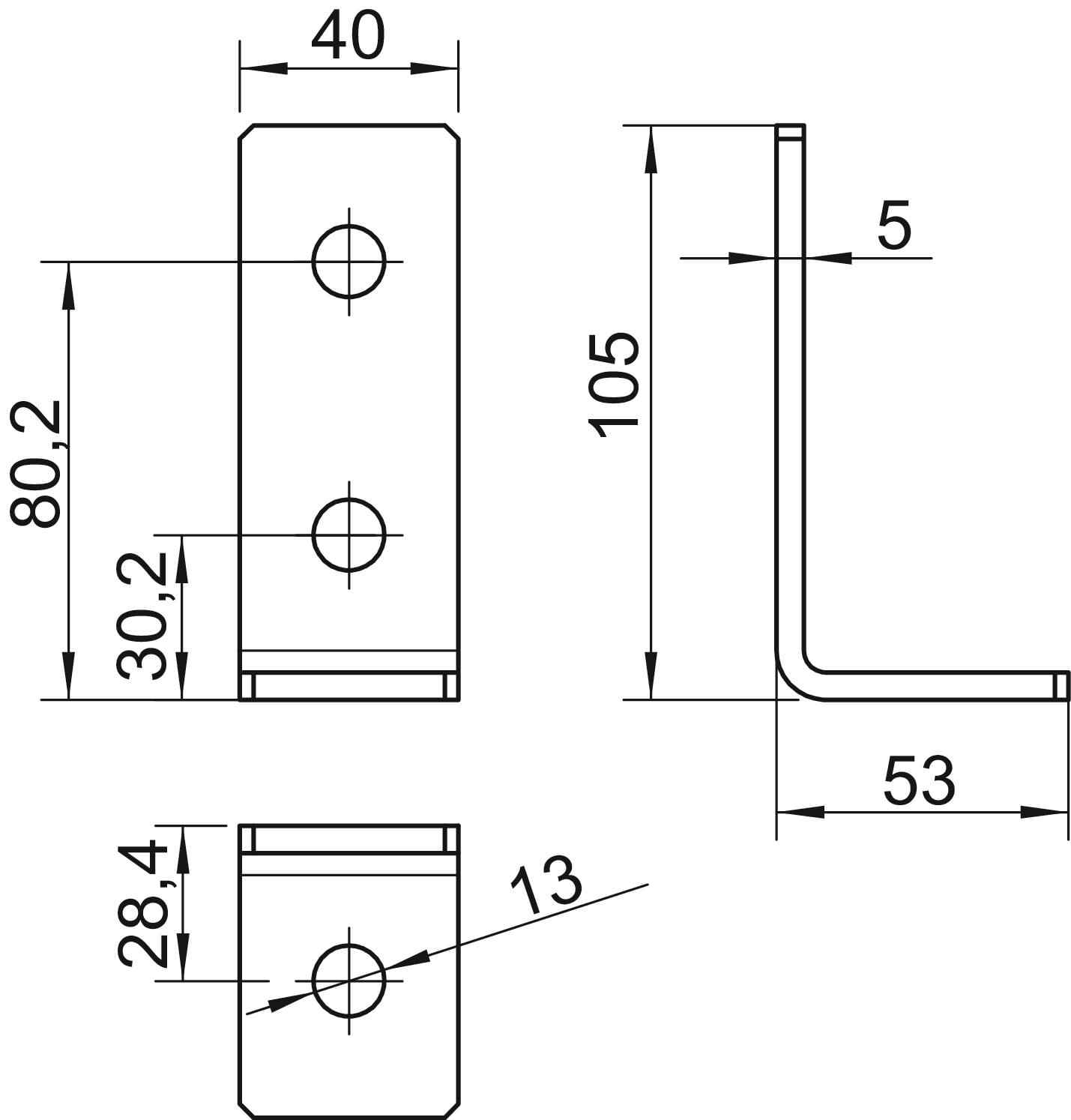 OBO BETTERMANN - Staffa di collegamento 90° con 3 fori 105x53x40x5 in Acciaio zincato a caldo per immersione. 1124661